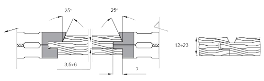 Применяется для изготовления «евровагонки» из твердой или мягкой древесины. Фрезы изготовлены из износостойкой стали. Конструкция фрезы позволяет регулировать толщину шипа (ширину паза) от 3,5 до 6 мм. Оснащены твердосплавными напайными ножами. Используется на фрезерных, четырехсторонних, двухсторонних шипорезных станках.