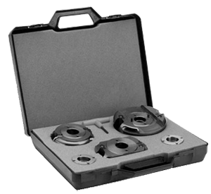 Корпус фрез изготовлен из легкого сплава. Каждая фреза оснащена 2 твердосплавными сменными ножами. Для изменения ширины обрабатываемой поверхности в комплекте имеются проставочные кольца. Комбинируя фрезы, можно получить различные профили. Используется на универсальных фрезерных станках с ручной подачей заготовок.