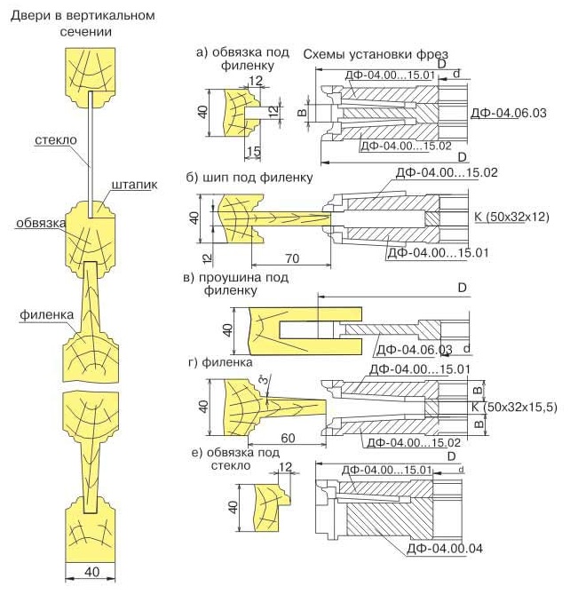 Комплект предназначен для полного изготовления филенчатых дверей и дверей с остеклением из древесины твердых и мягких пород на универсальных фрезерных станках.
