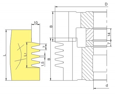 | Обозначение | D, mm | d, mm | B, mm | L, mm | L1, mm | Кол-во шипов | Z | n |
