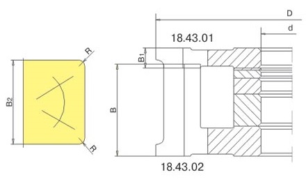 | Обозначение | D, mm | d, mm | B, mm | B1, mm | B2, mm | R | Z |