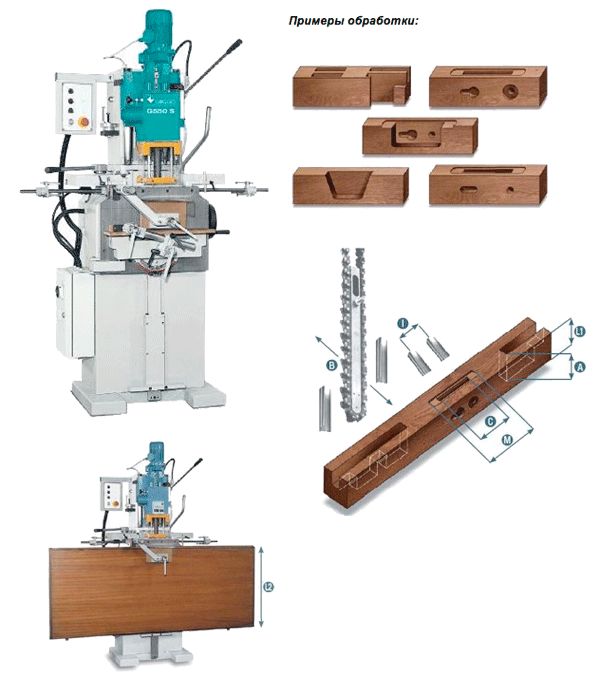 Предназначен для выборки сквозных и глухих пазов в изделиях из древесины и материалах на ее основе (например, изготовление паза для замка в двери, пазов для петель, для соединения деталей: ящиков стола, дверей, окон, столешниц). Для средних и крупных столярных производств.